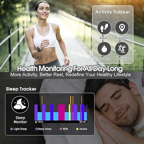 Monitor your heart rate, blood oxygen (SpO₂), and sleep quality 24/7. The real-time data allows you to understand your health better and adjust your lifestyle for improvement.